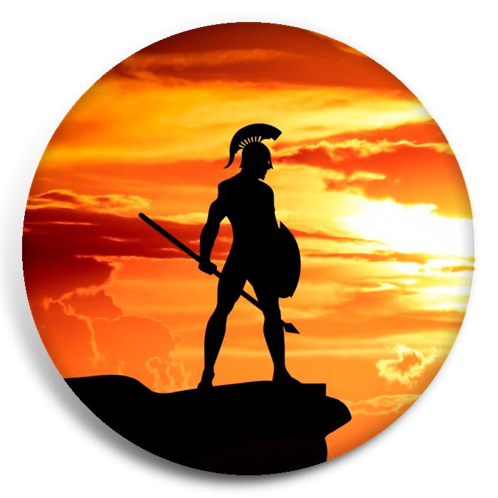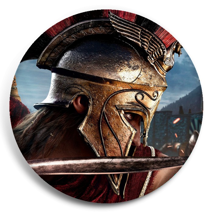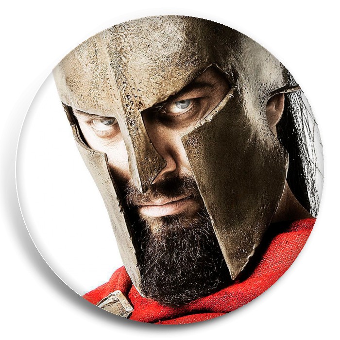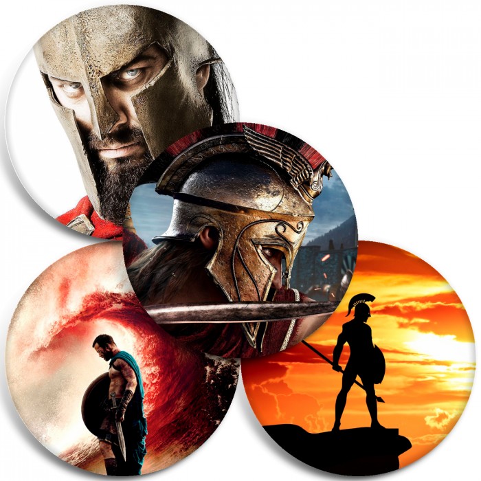Несколько видов значков с персонажами вселенной 300 спартанцев.
