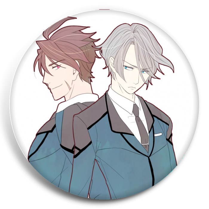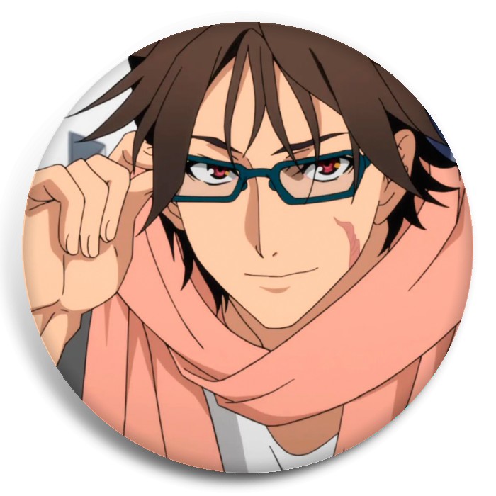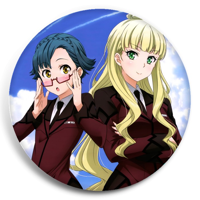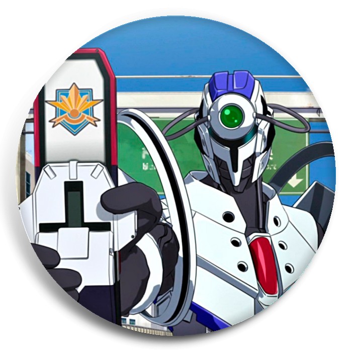 Несколько видов значков с персонажами вселенной Активный рейд: Мобильная боевая дивизия; восьмой отряд.