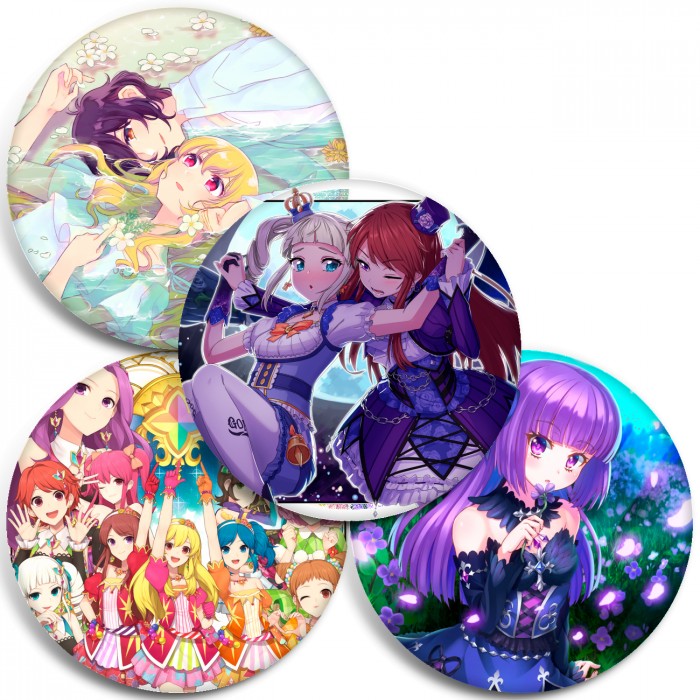 Несколько видов значков с персонажами вселенной Айкацу.