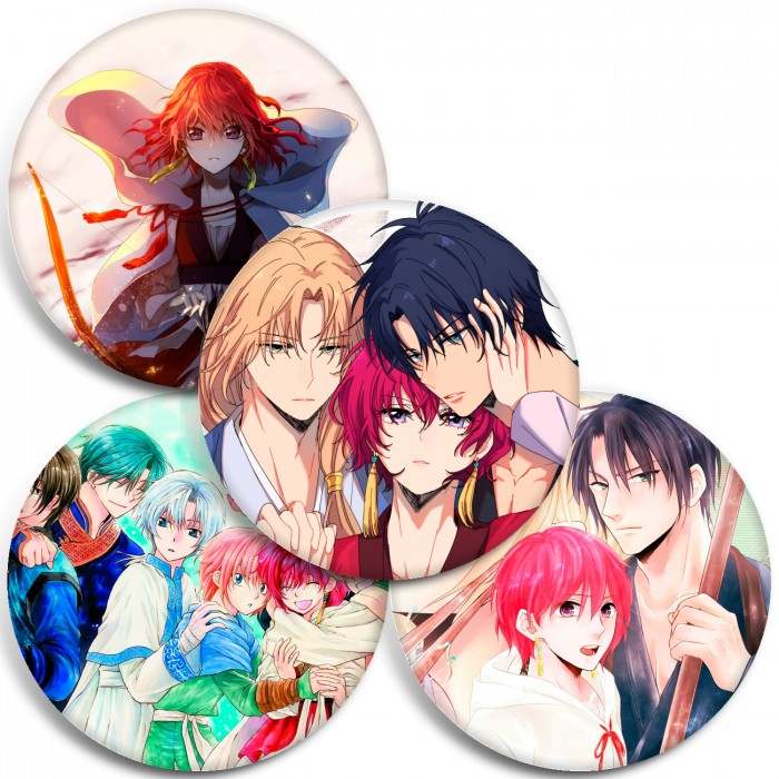 Несколько видов значков с персонажами вселенной Йона на заре.