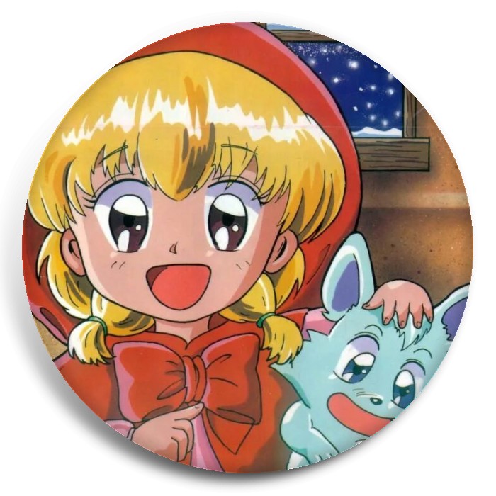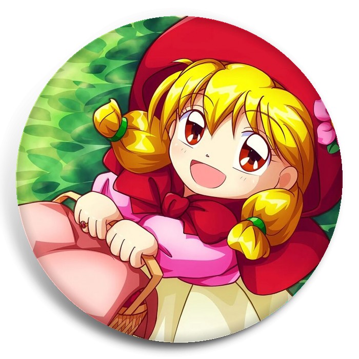 Несколько видов значков с персонажами вселенной Красная шапочка Тятя.