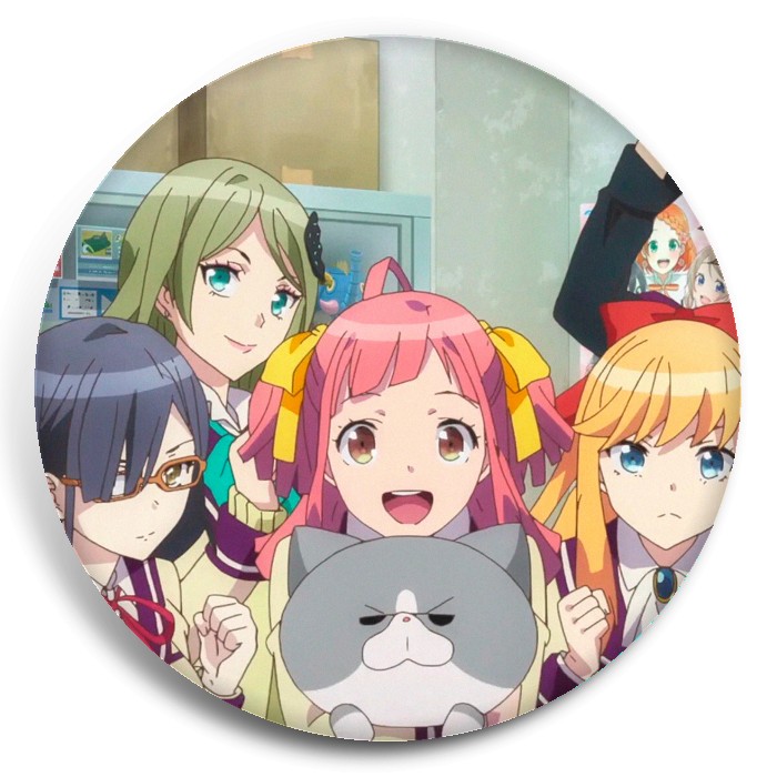 Несколько видов значков с персонажами вселенной Аниме-истории.