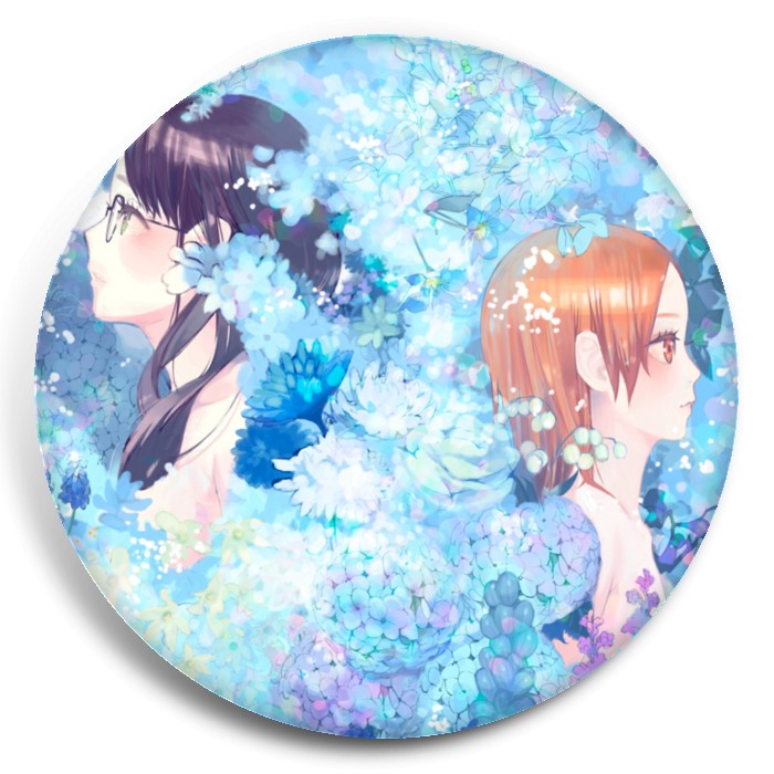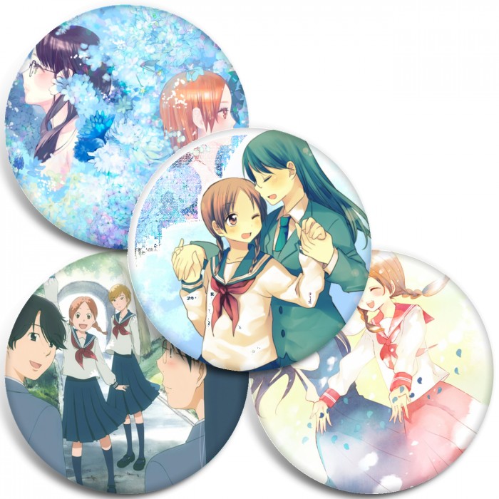 Несколько видов значков с персонажами вселенной Голубые цветы.