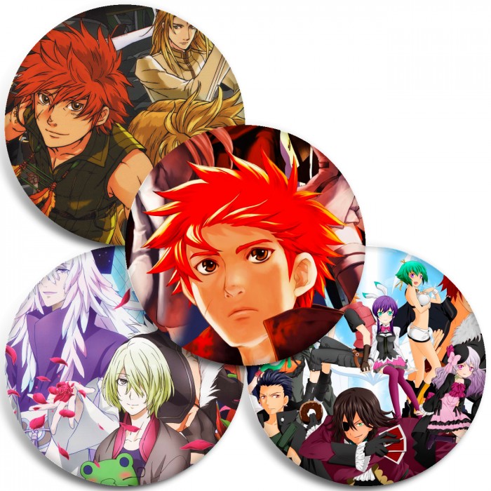 Несколько видов значков с персонажами вселенной Акварион.