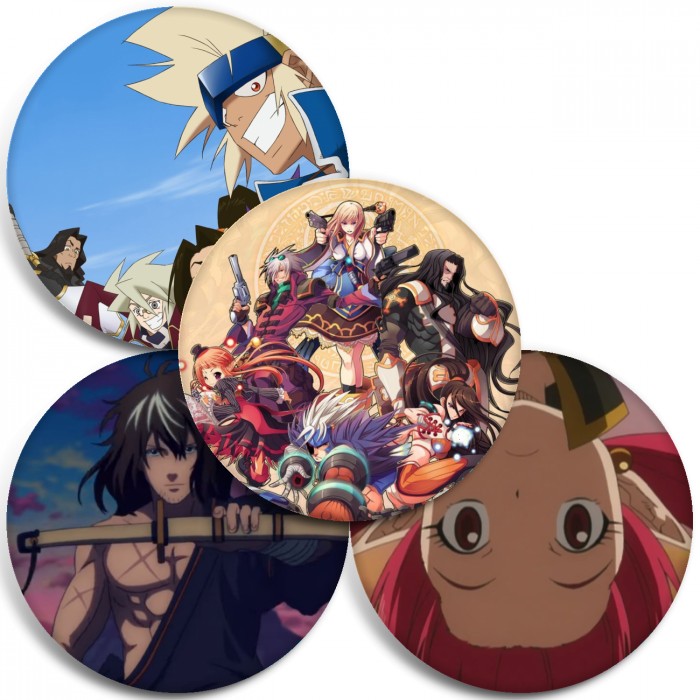 Несколько видов значков с персонажами вселенной Крутая компания: Арадские приключения.