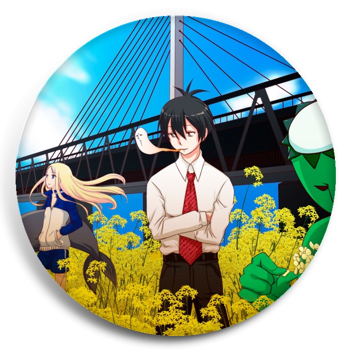 Несколько видов значков с персонажами вселенной Под мостом над Аракавой.