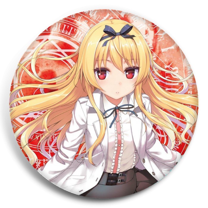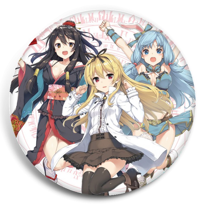 Несколько видов значков с персонажами вселенной Арифурэта: Сильнейший ремесленник в мире.