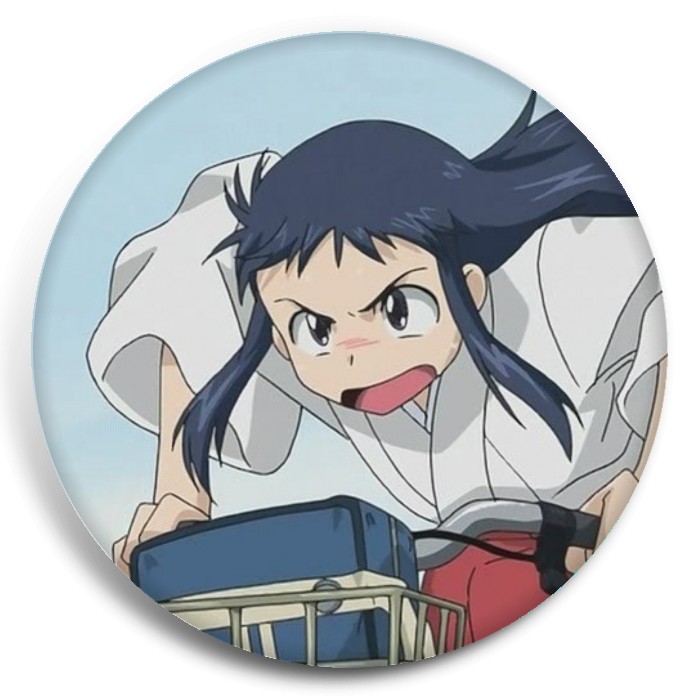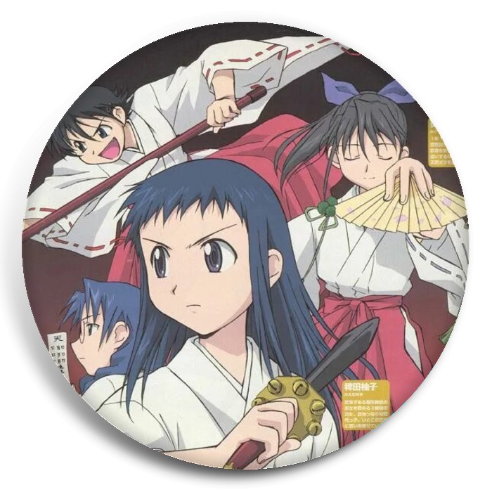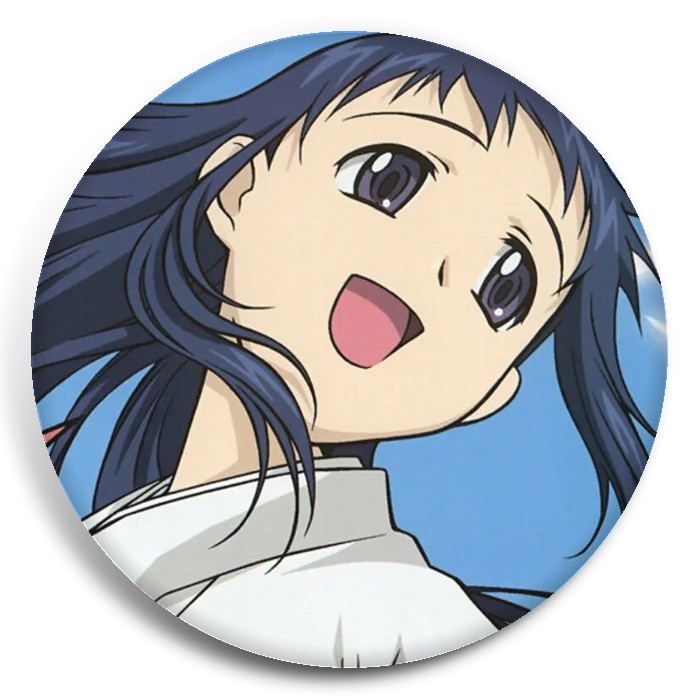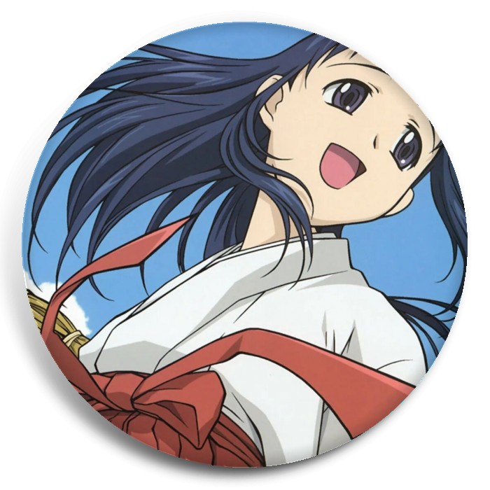 Несколько видов значков с персонажами вселенной Мико из утреннего тумана.