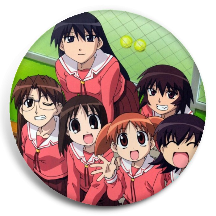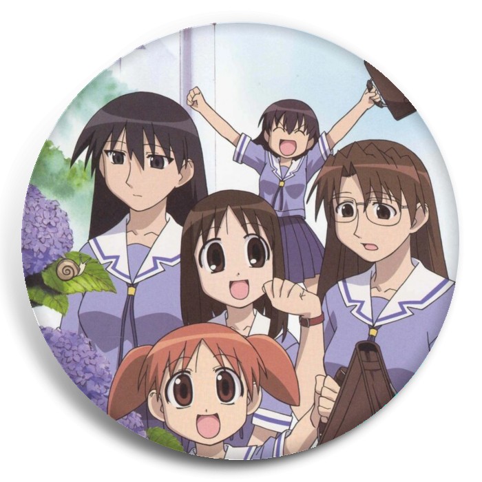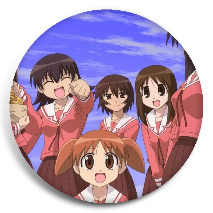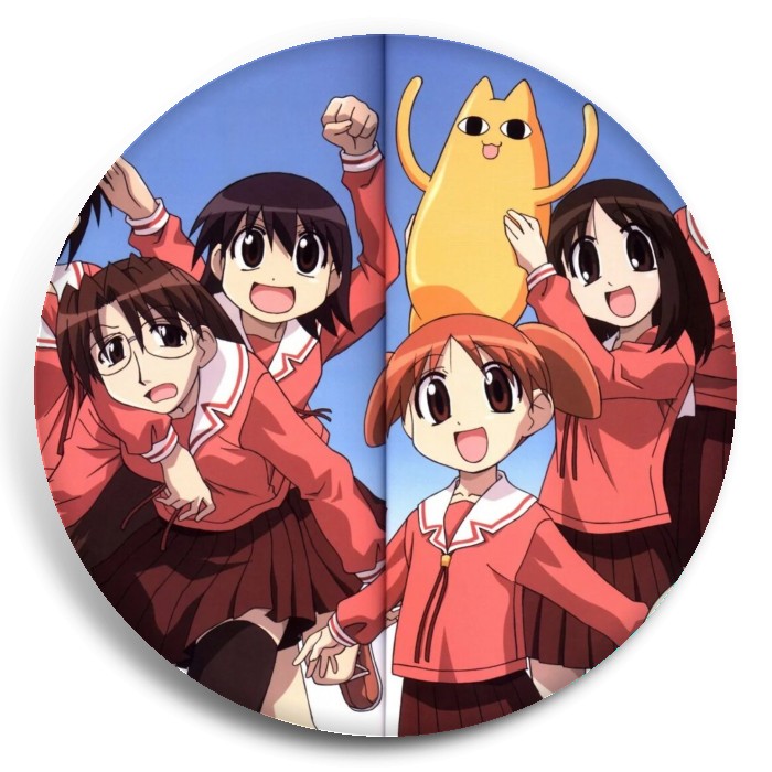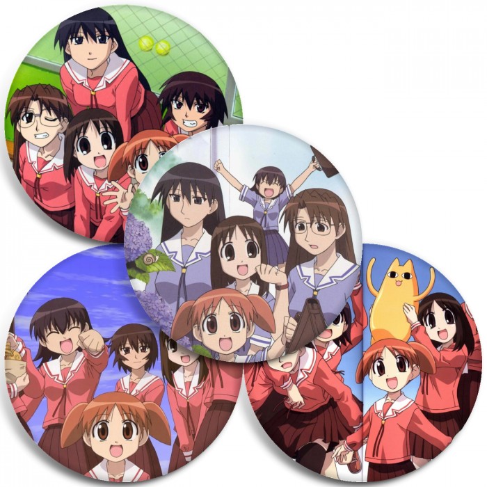 Несколько видов значков с персонажами вселенной Адзуманга Дайо.