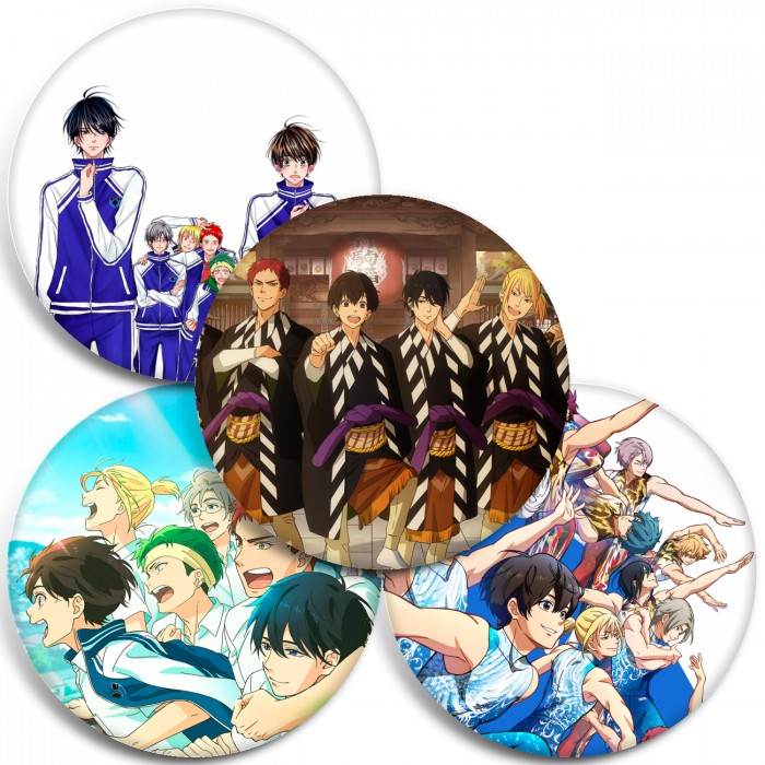 Несколько видов значков с персонажами вселенной Бэк-флип!!.