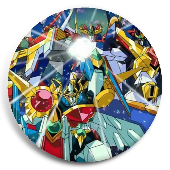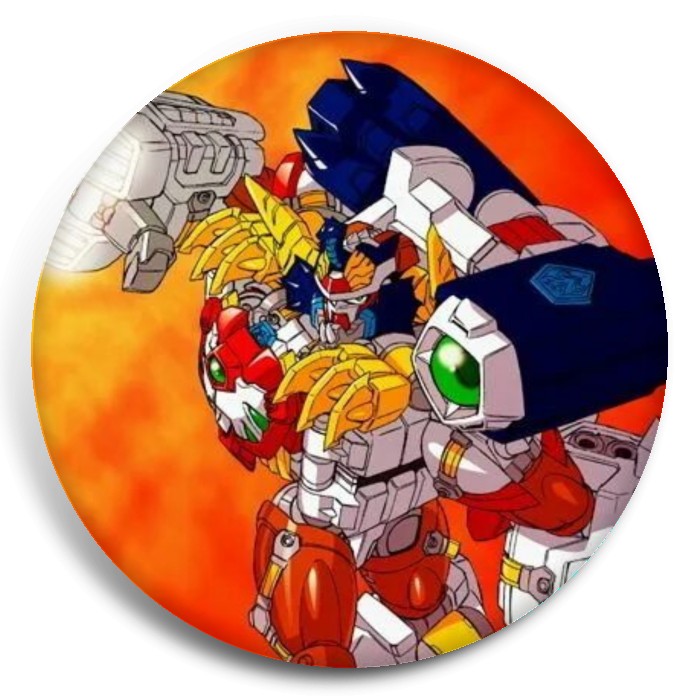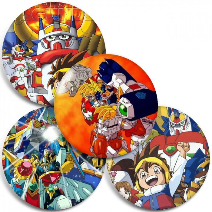 Несколько видов значков с персонажами вселенной Дайгандер.