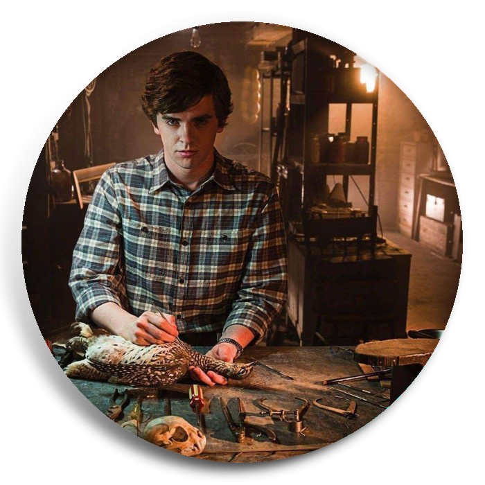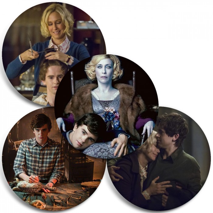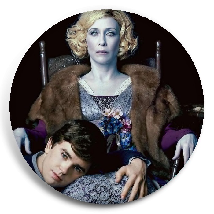 Несколько видов значков с персонажами вселенной Мотель Бейтса.