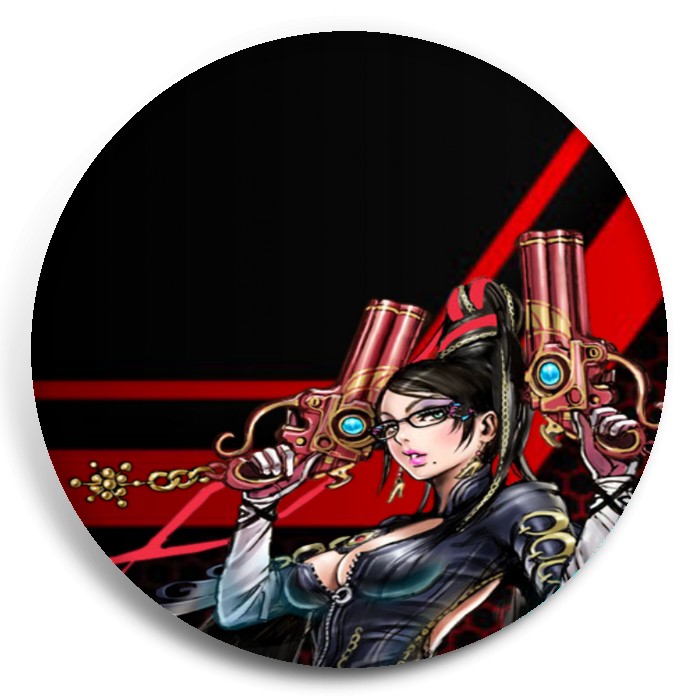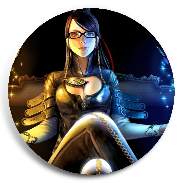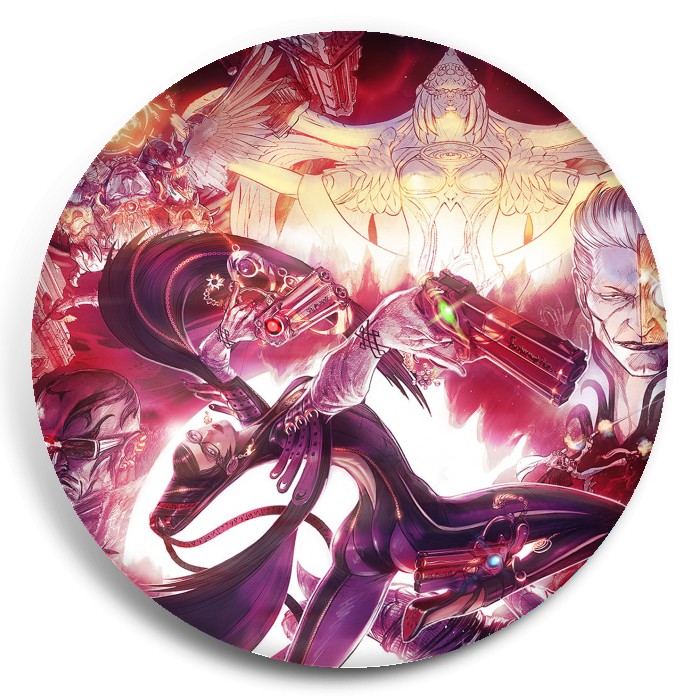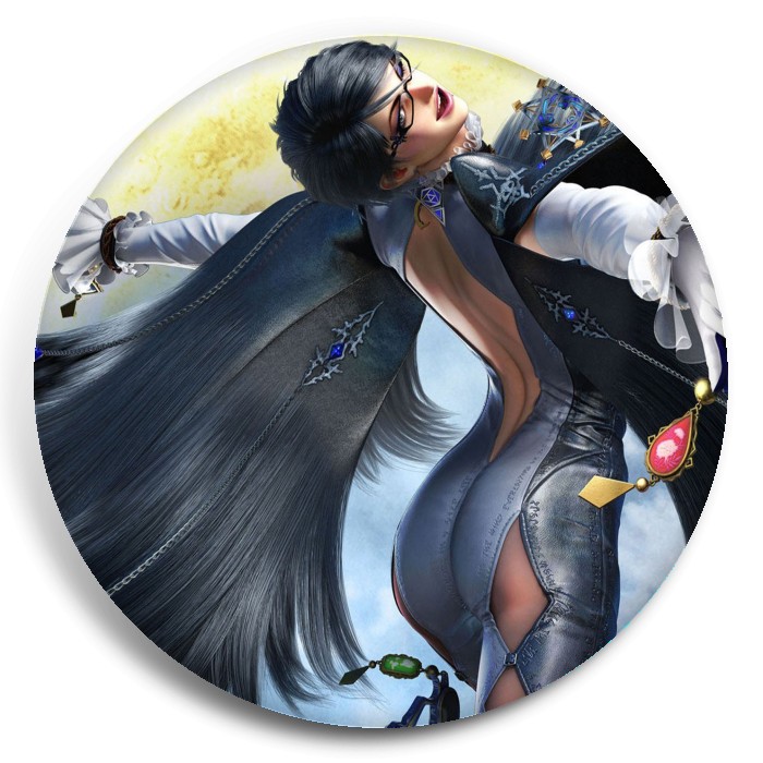 Несколько видов значков с персонажами вселенной Bayonetta.