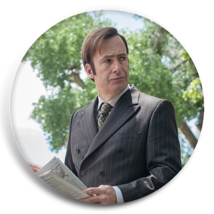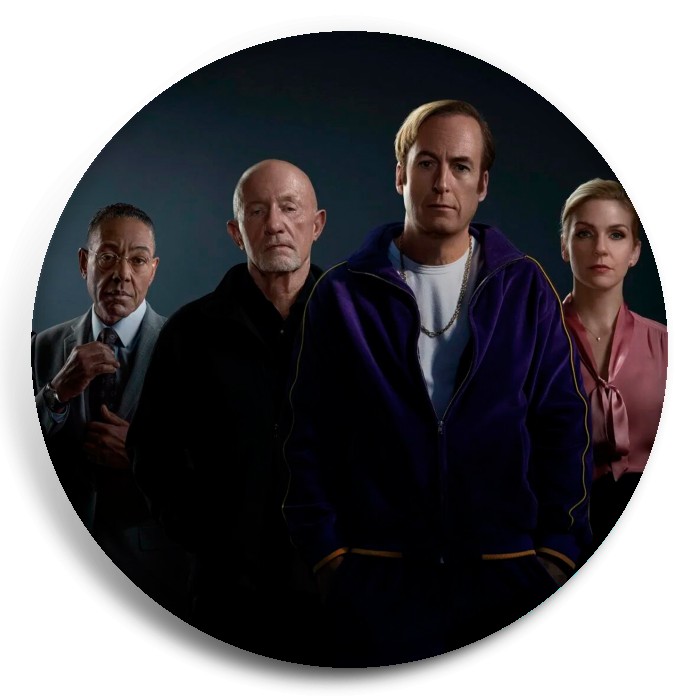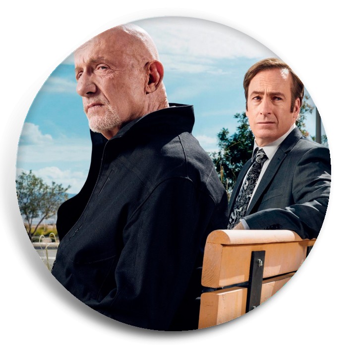 Несколько видов значков с персонажами вселенной Лучше звони Солу.