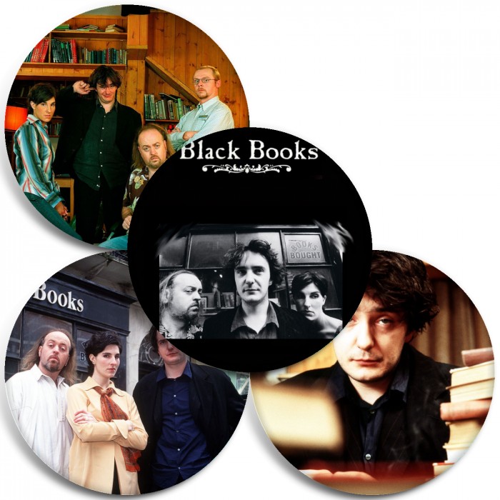 Несколько видов значков с персонажами вселенной Книжный магазин Блэка.