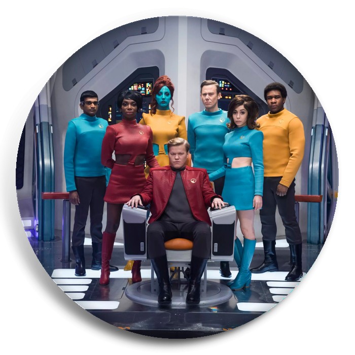 Несколько видов значков с персонажами вселенной Чёрное зеркало.