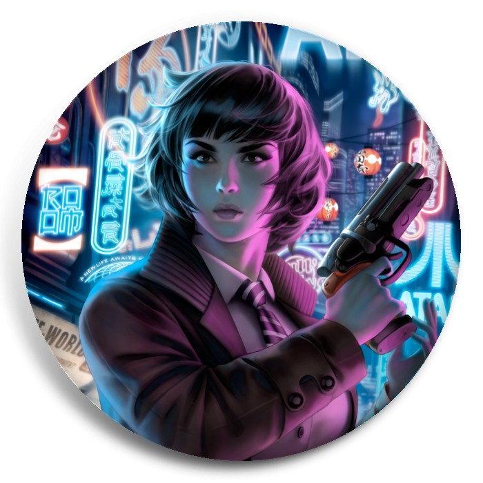 Несколько видов значков с персонажами вселенной Бегущий по лезвию.