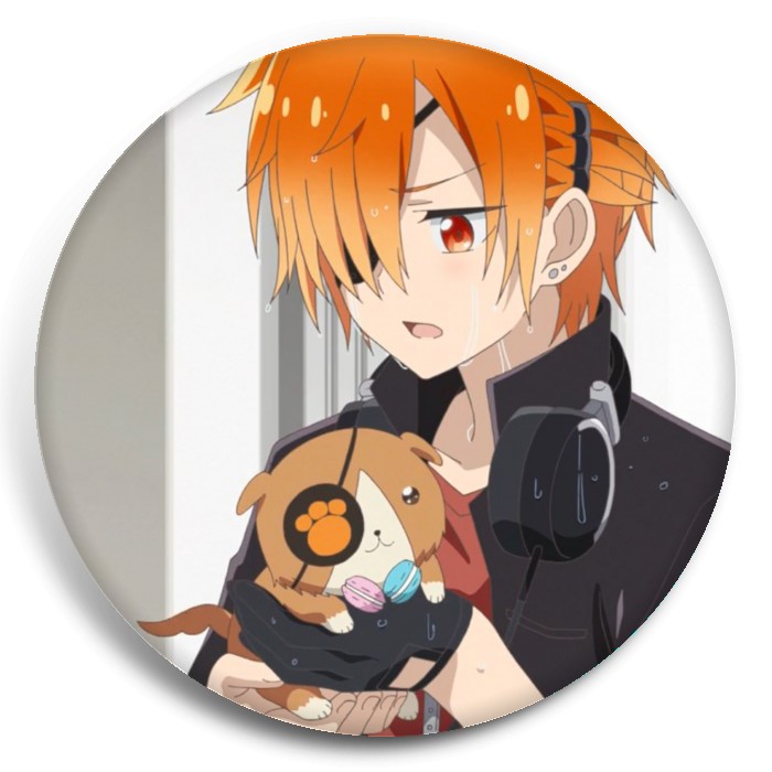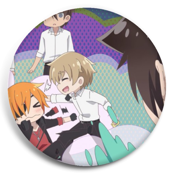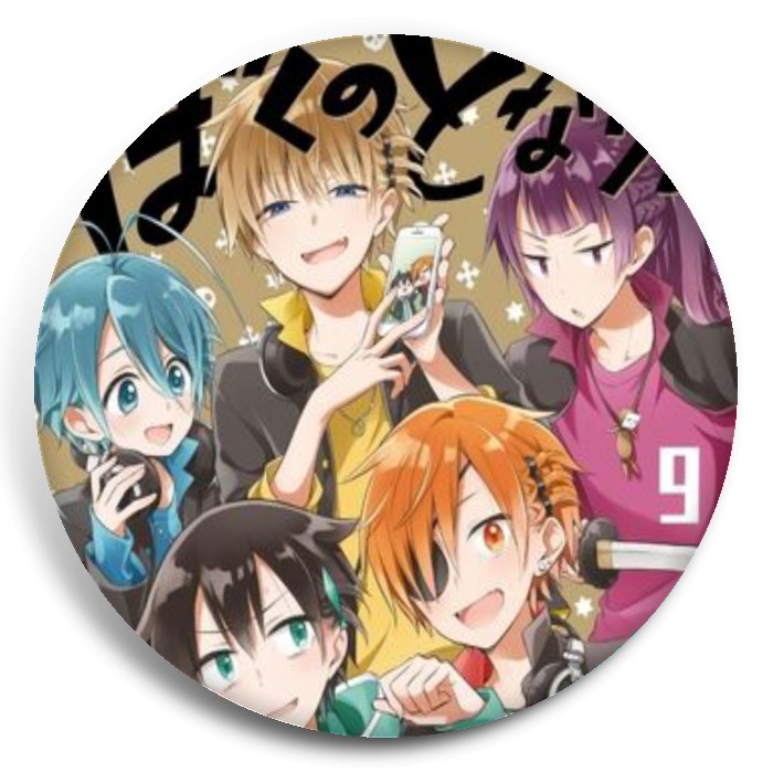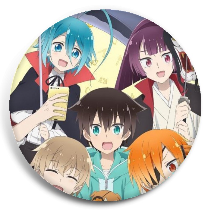 Несколько видов значков с персонажами вселенной Мой одноклассник — тёмный бог разрушения.