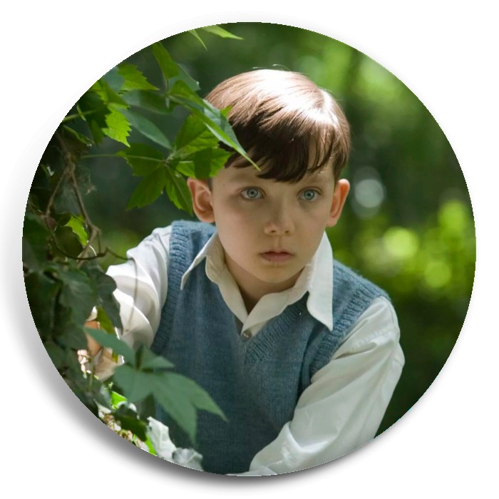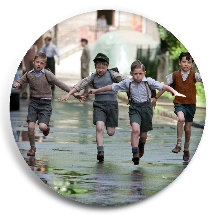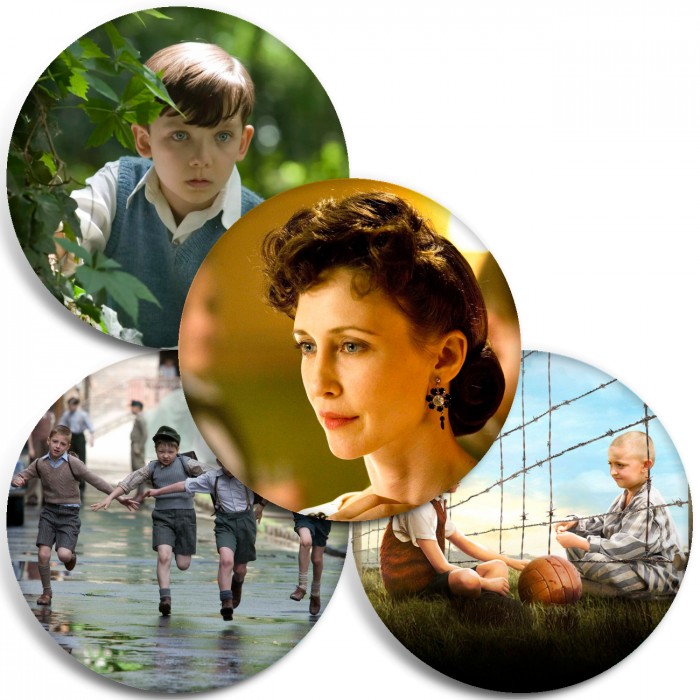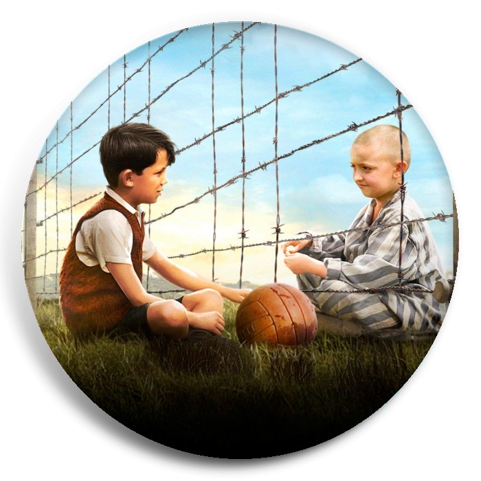 Несколько видов значков с персонажами вселенной Мальчик в полосатой пижаме.