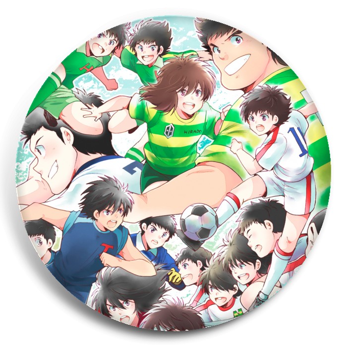 Несколько видов значков с персонажами вселенной Капитан Цубаса.