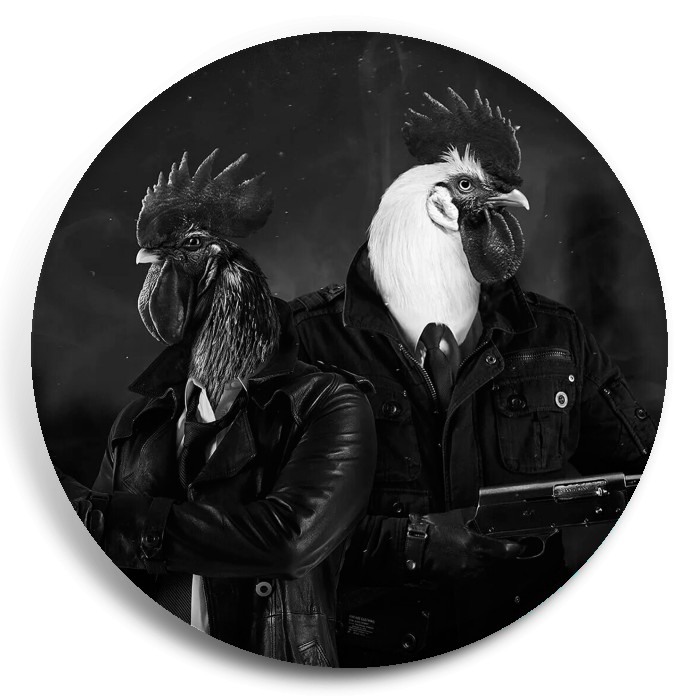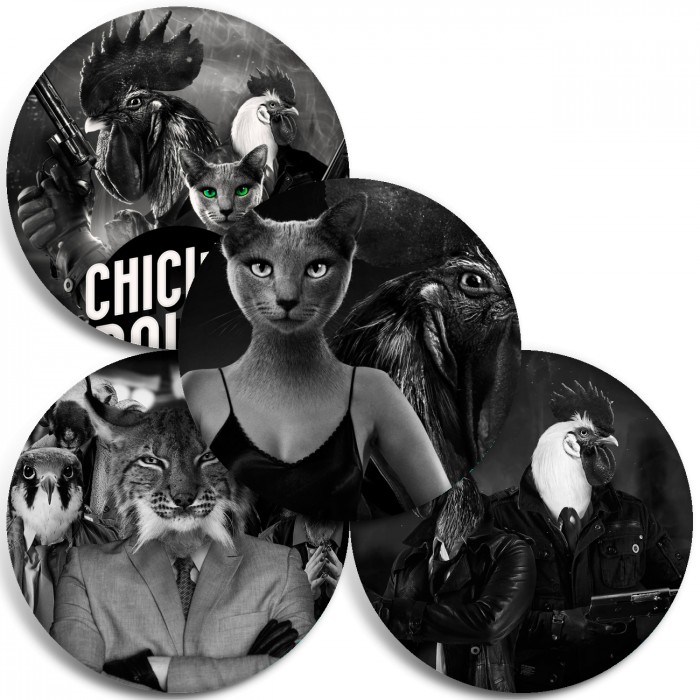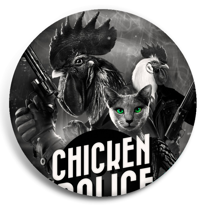 Несколько видов значков с персонажами вселенной Chicken Police - Paint it RED!.