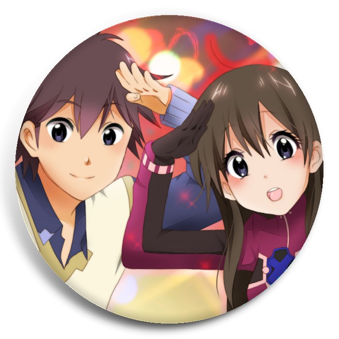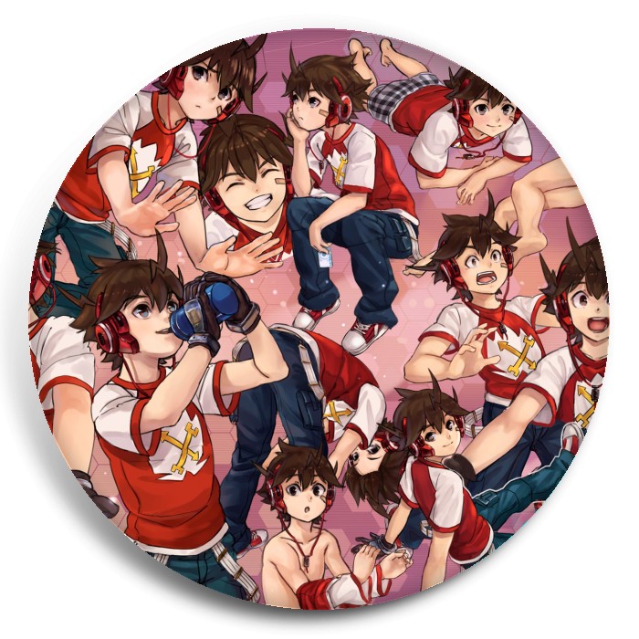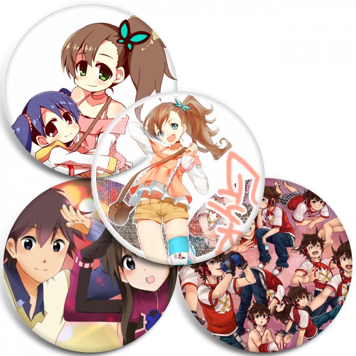 Несколько видов значков с персонажами вселенной Суперскоростной Гирозеттер.