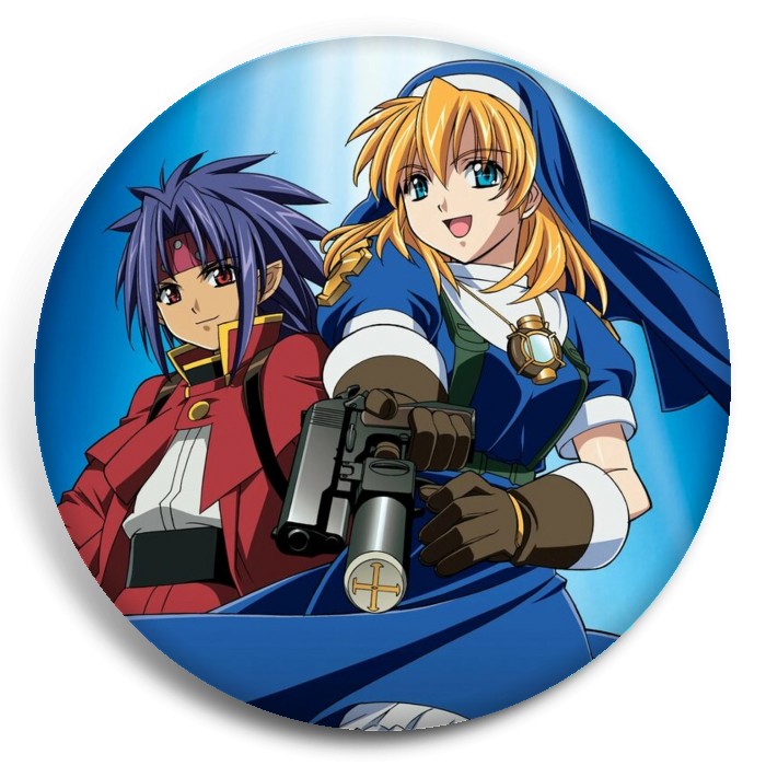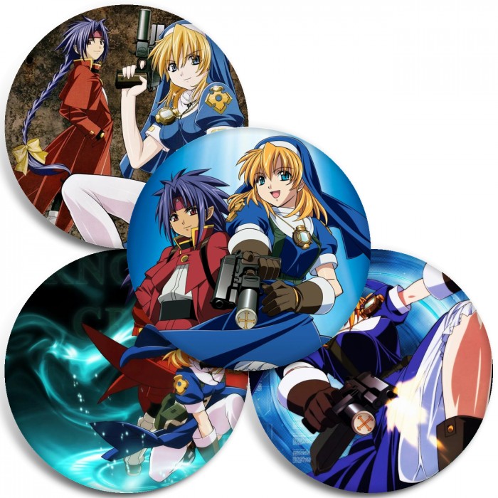 Несколько видов значков с персонажами вселенной Крестовый поход Хроно.