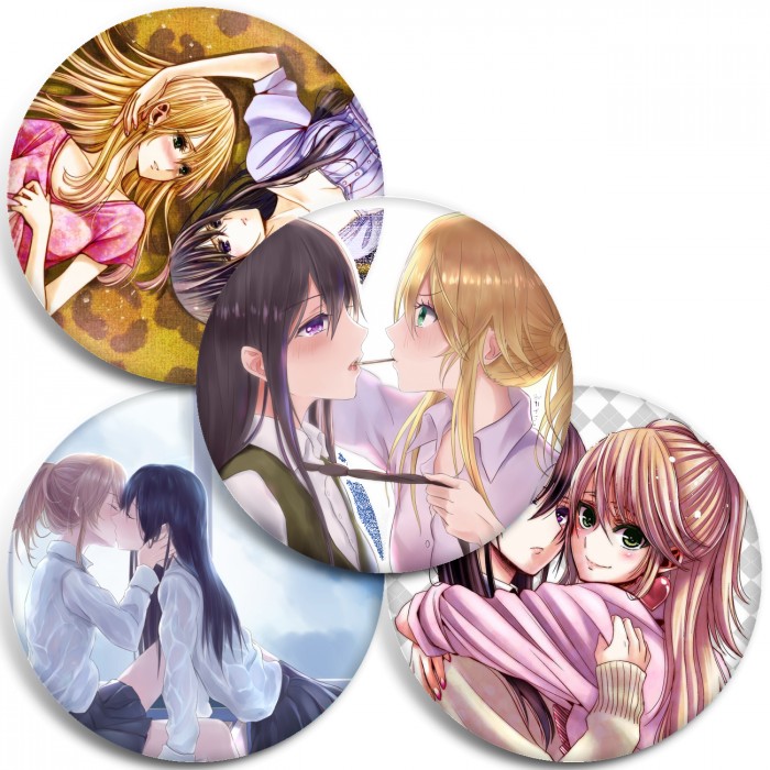 Несколько видов значков с персонажами вселенной Цитрус.
