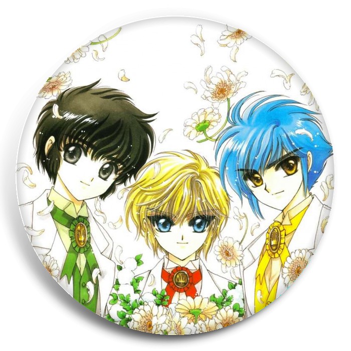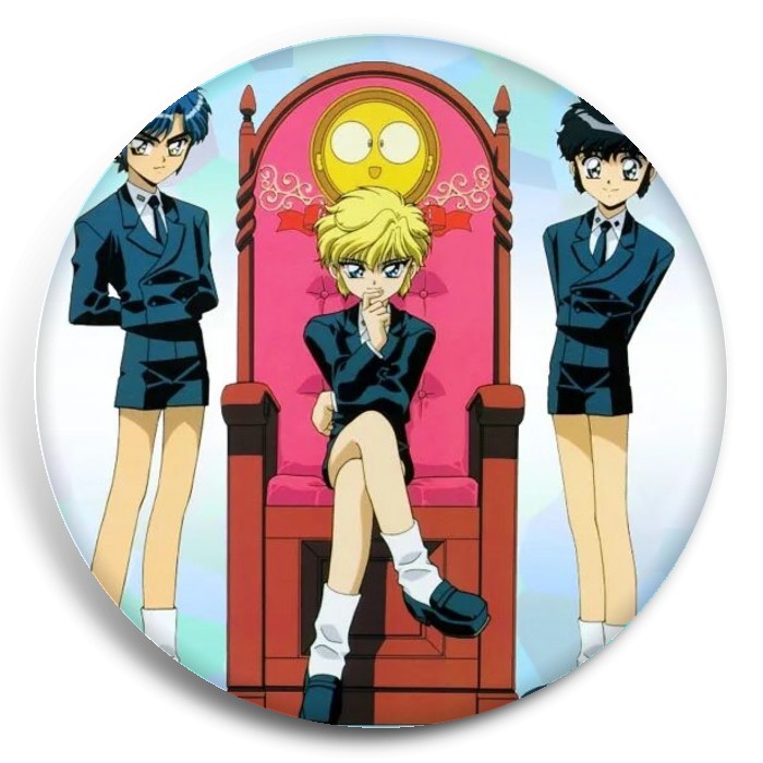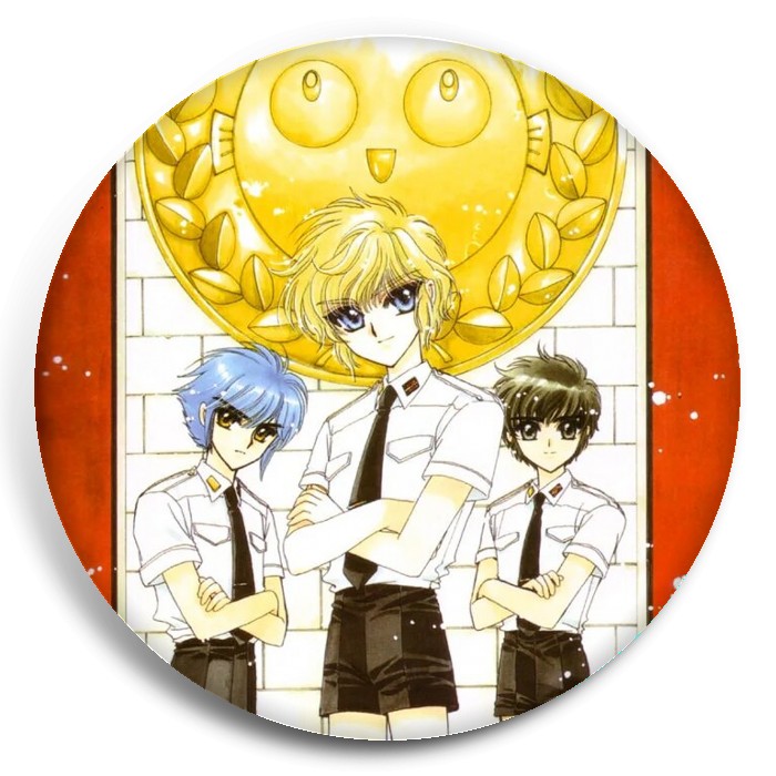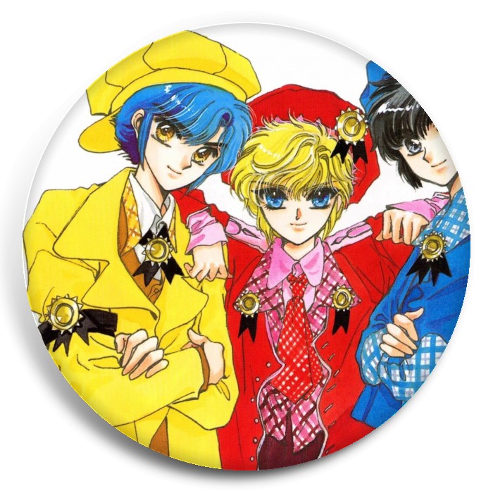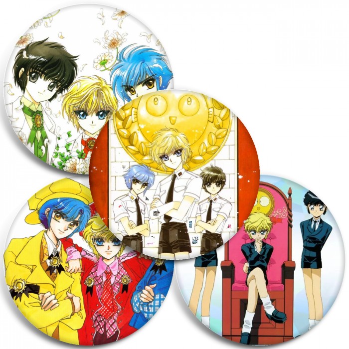 Несколько видов значков с персонажами вселенной Детективы академии КЛАМП.