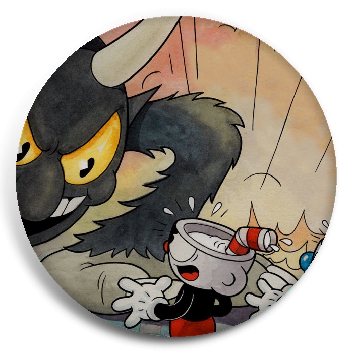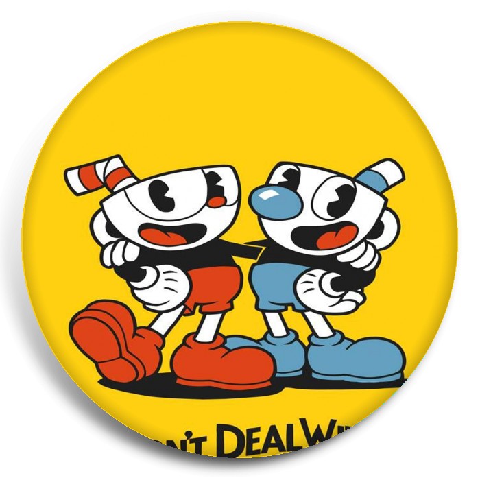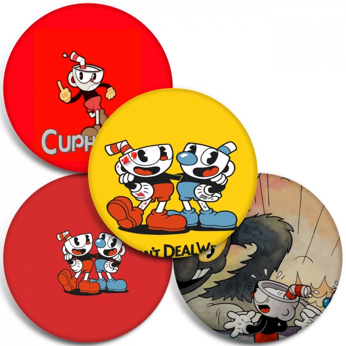 Несколько видов значков с персонажами вселенной Cuphead.