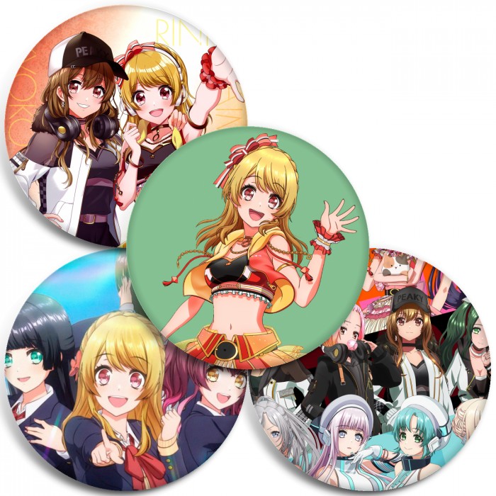 Несколько видов значков с персонажами вселенной Д — значит диджей.
