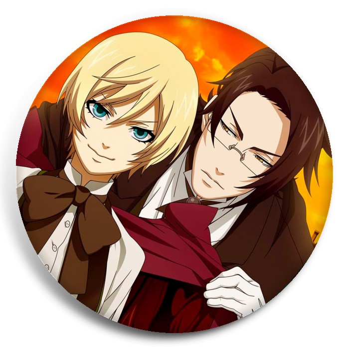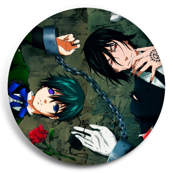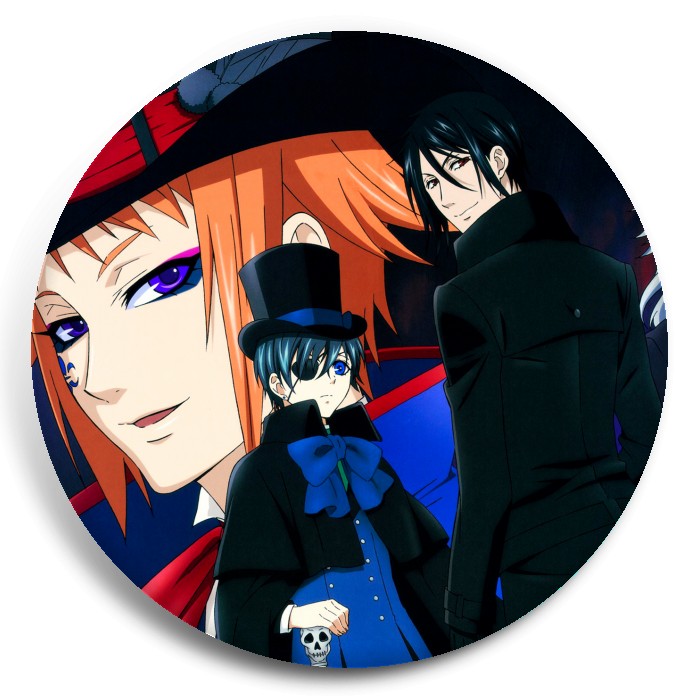 Несколько видов значков с персонажами вселенной Тёмный дворецкий.