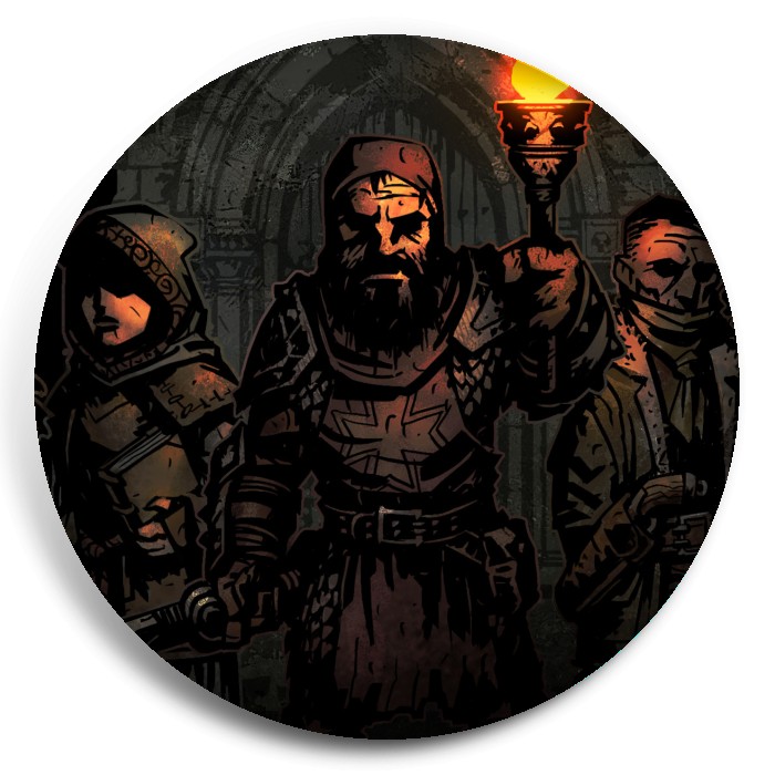Несколько видов значков с персонажами вселенной Darkest Dungeon.