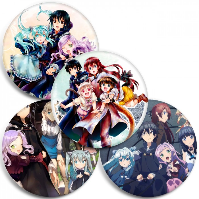 Несколько видов значков с персонажами вселенной Марш смерти под рапсодию параллельного мира.