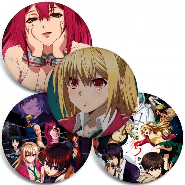 Несколько видов значков с персонажами вселенной Битва через 5 секунд после встречи.
