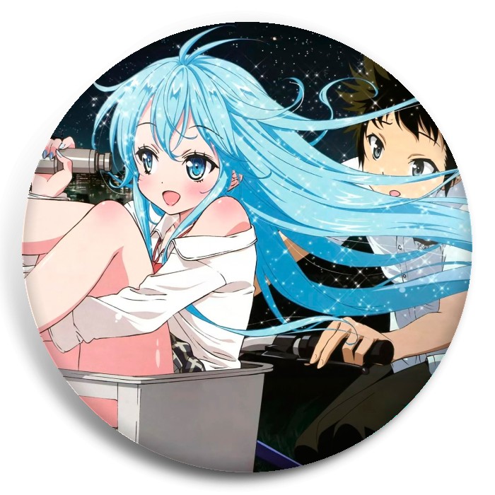 Несколько видов значков с персонажами вселенной Радиосигнал от чудачки. Юноша на связи.