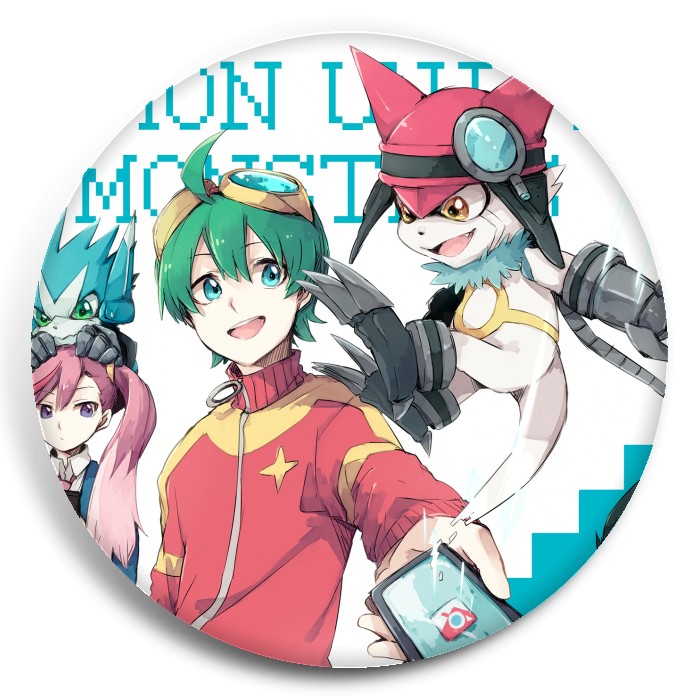 Несколько видов значков с персонажами вселенной Вселенная Дигимонов.