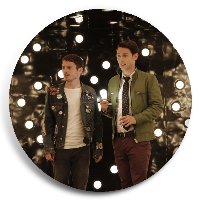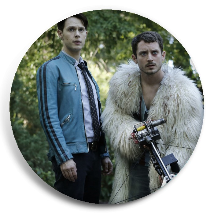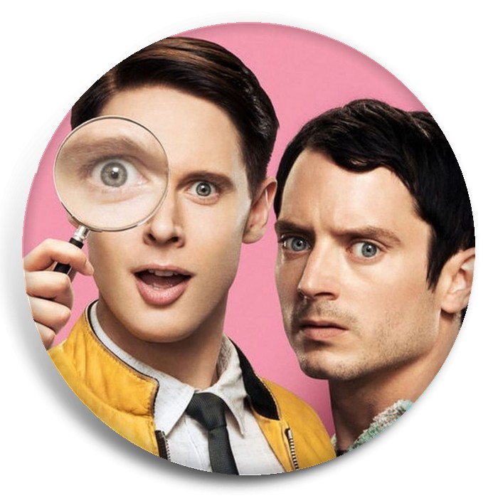 Несколько видов значков с персонажами вселенной Детективное агентство Дирка Джентли.