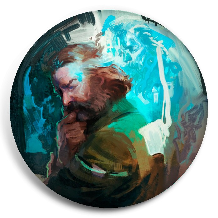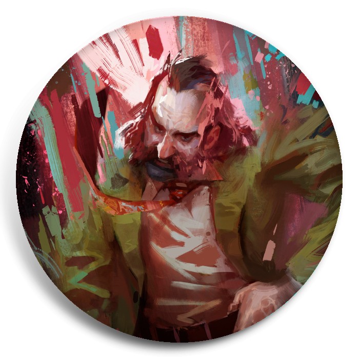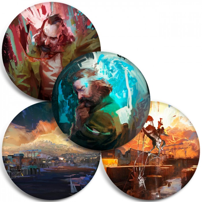 Несколько видов значков с персонажами вселенной Disco Elysium.