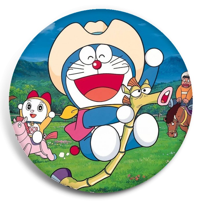 Несколько видов значков с персонажами вселенной Дораэмон.