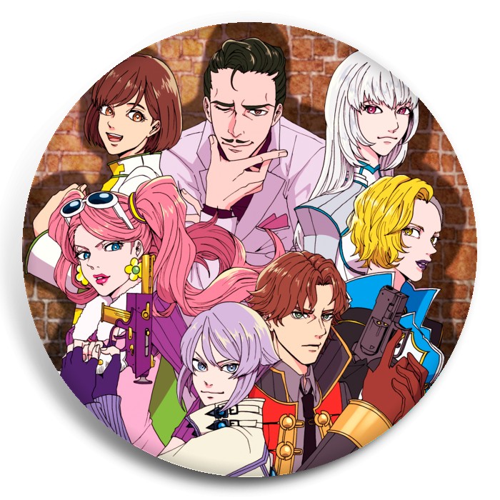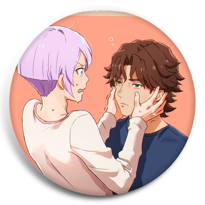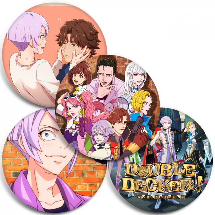 Несколько видов значков с персонажами вселенной Двойной удар: Даг и Кирилл.