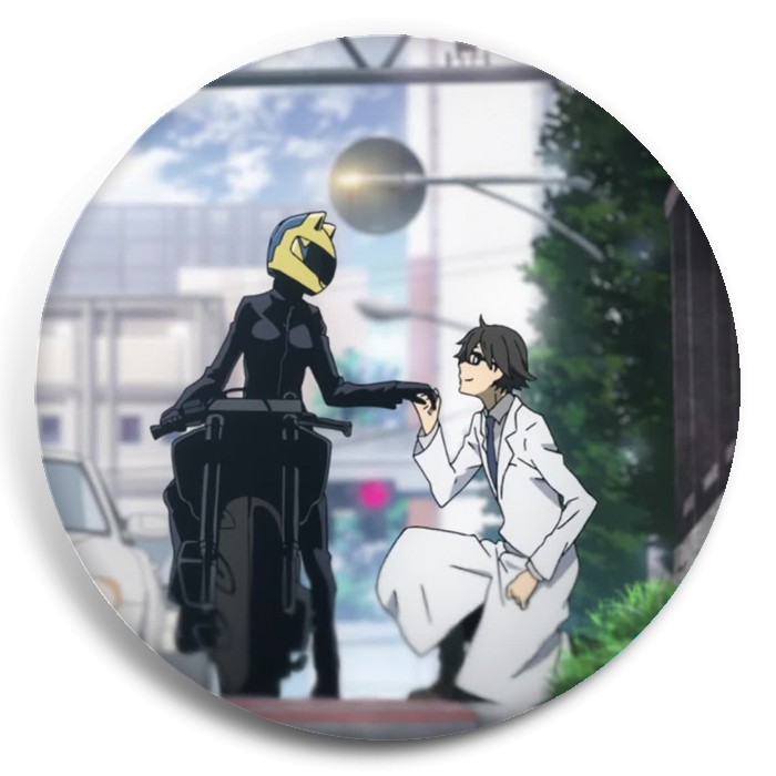 Несколько видов значков с персонажами вселенной Дюрарара.