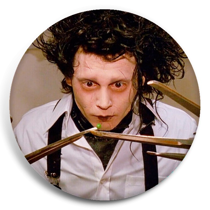 Несколько видов значков с персонажами вселенной Эдвард руки-ножницы.