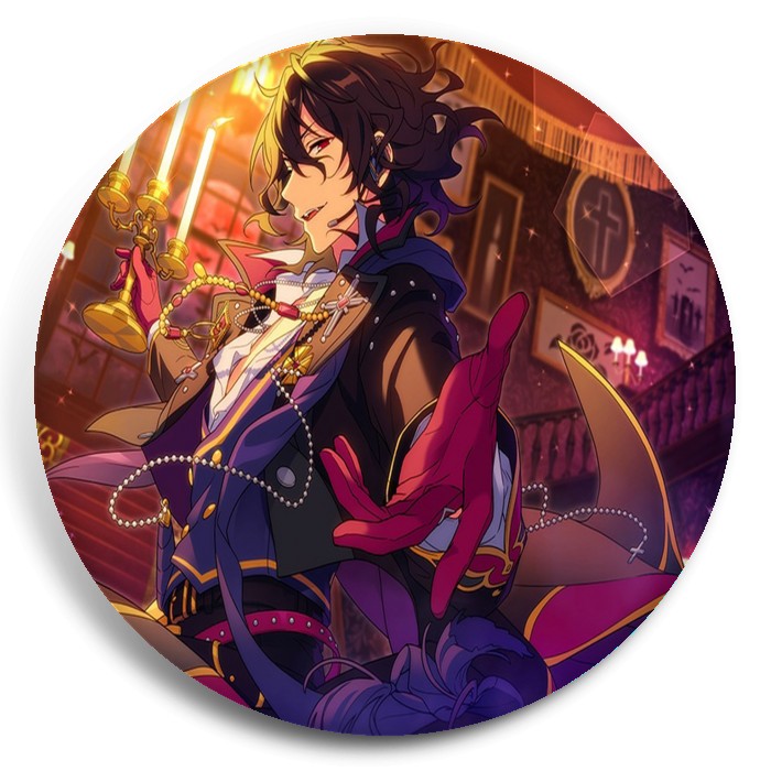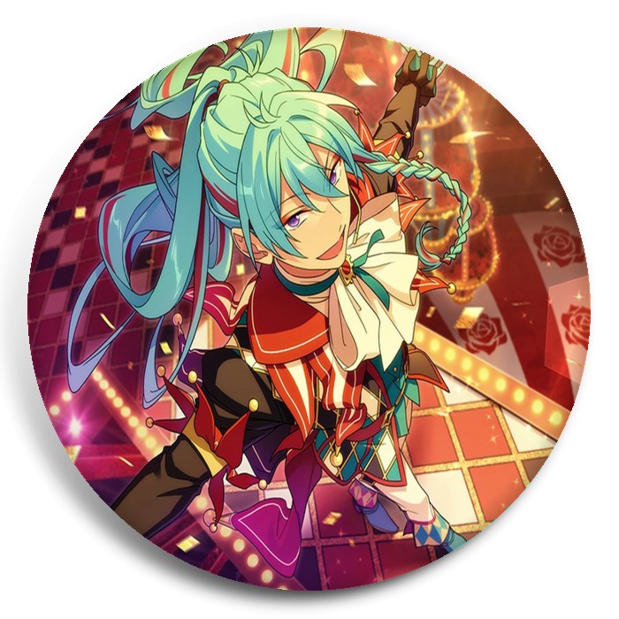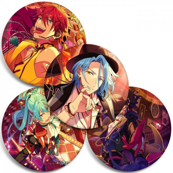 Несколько видов значков с персонажами вселенной Звёзды ансамбля.