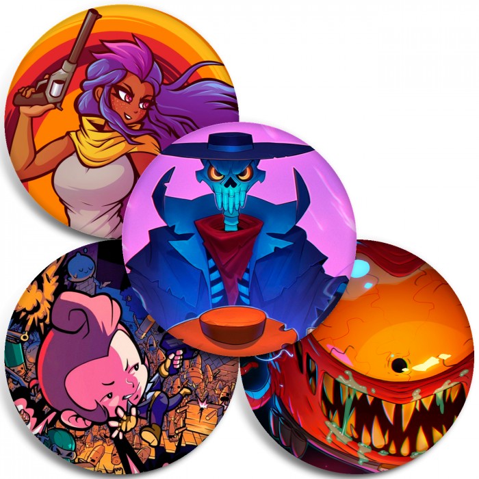 Несколько видов значков с персонажами вселенной Enter the Gungeon.