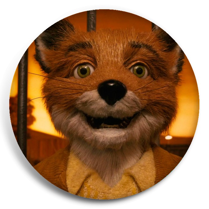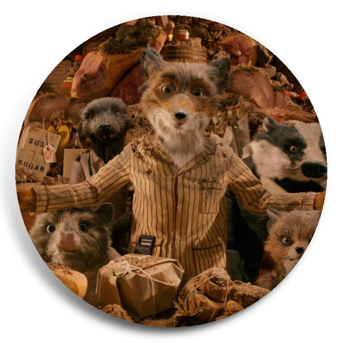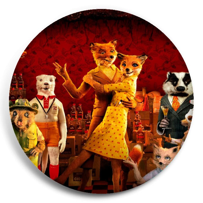 Несколько видов значков с персонажами вселенной Бесподобный мистер Фокс.