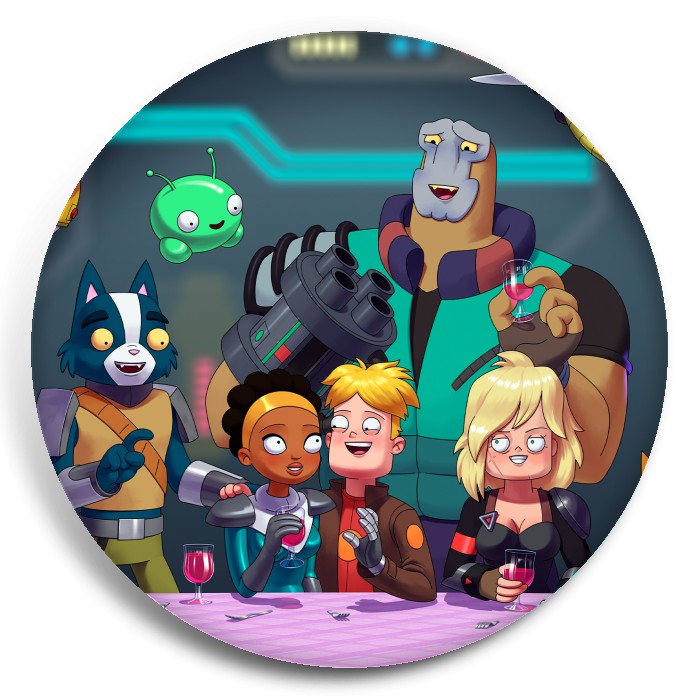 Несколько видов значков с персонажами вселенной Крайний космос.