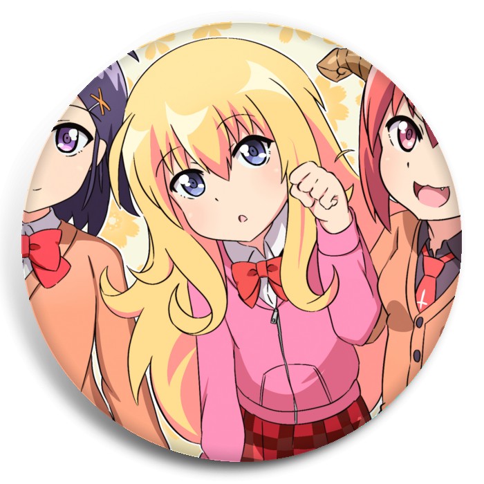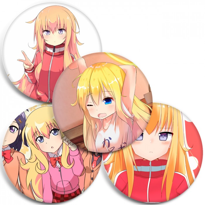 Несколько видов значков с персонажами вселенной Отступница Габриэль.