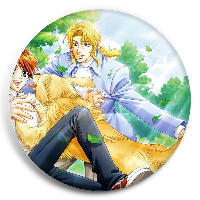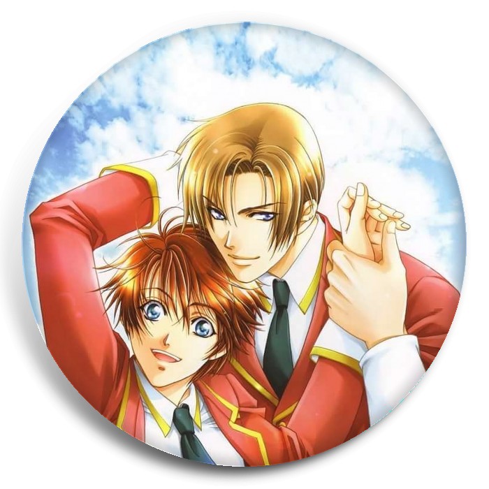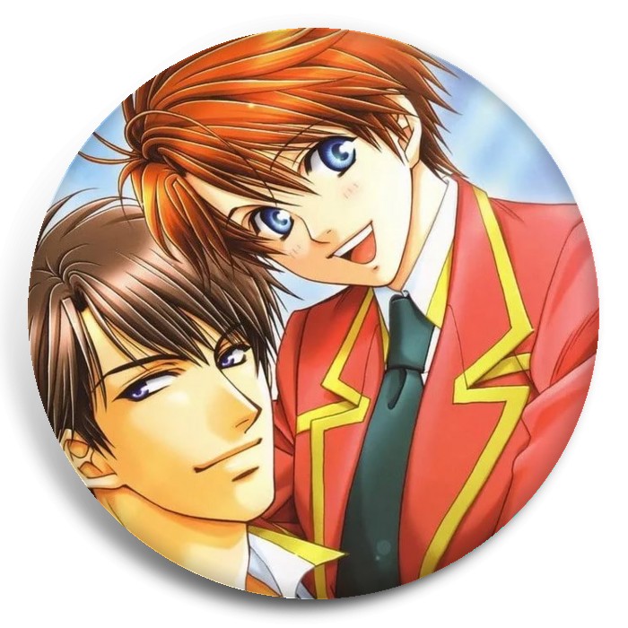 Несколько видов значков с персонажами вселенной Райская школа.