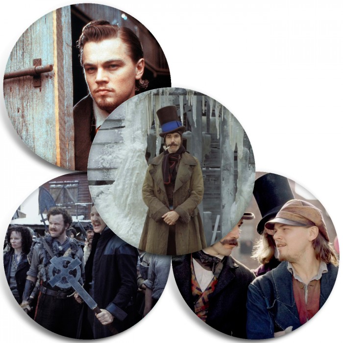 Несколько видов значков с персонажами вселенной Банды Нью-Йорка.